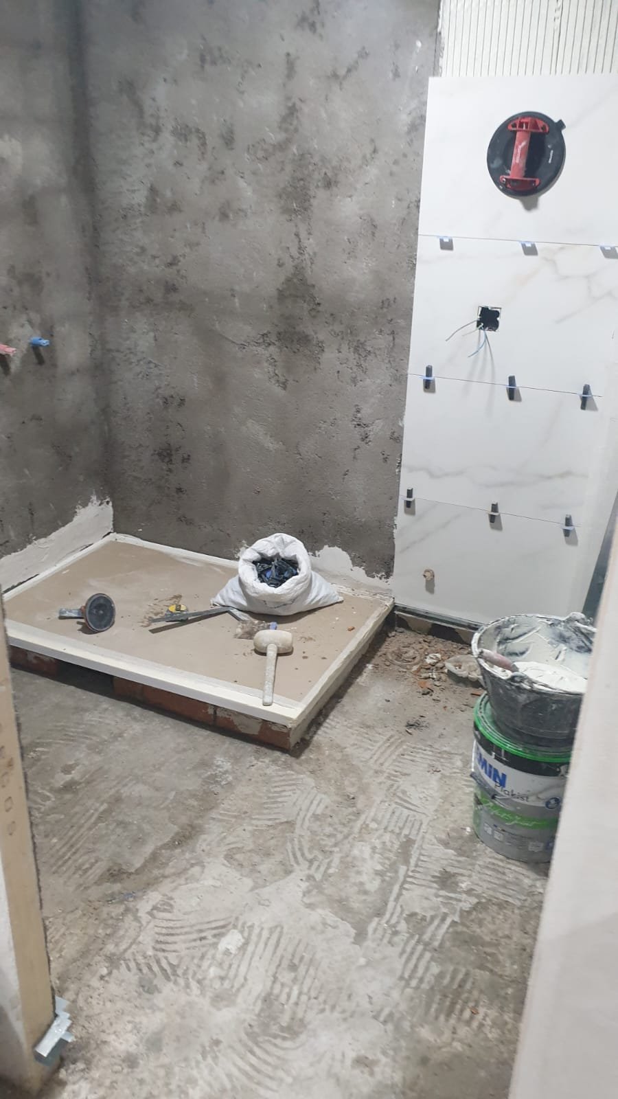 Transformación completa de un baño, incluyendo nueva distribución, baños y acabados modernos.
